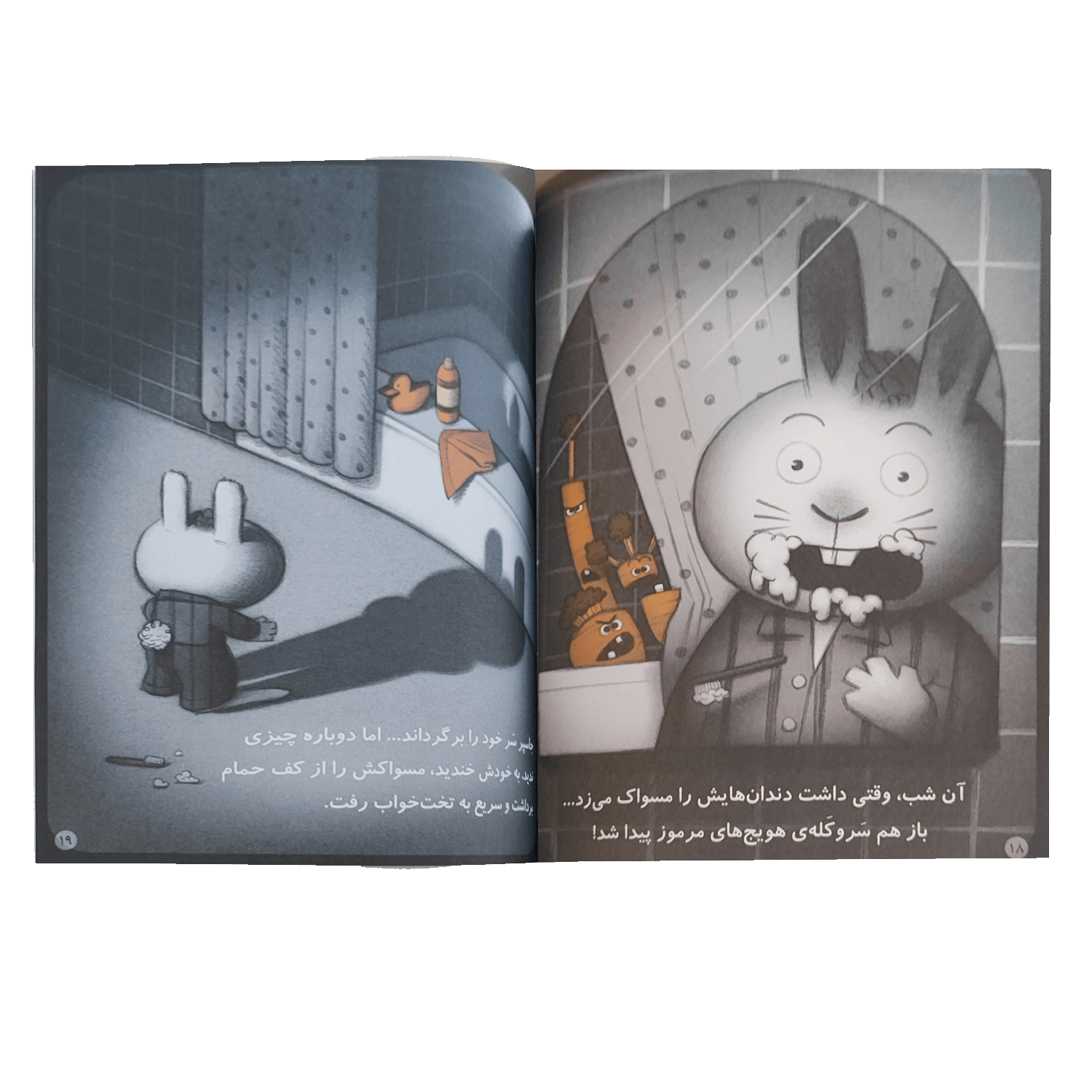 در «هویجهای وحشتناک» آرون رینولدز بهکمک تصویرگری سیاهوسفید همراه با رنگ نارنجی درخشان، فضایی رمزآلود و در عین حال خندهدار خلق میکند. این ترکیب باعث میشود کودکان درگیر داستان شوند و تا پایان با کنجکاوی پیش بروند.